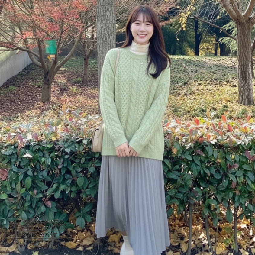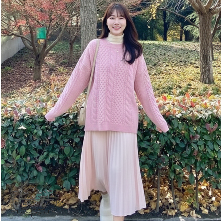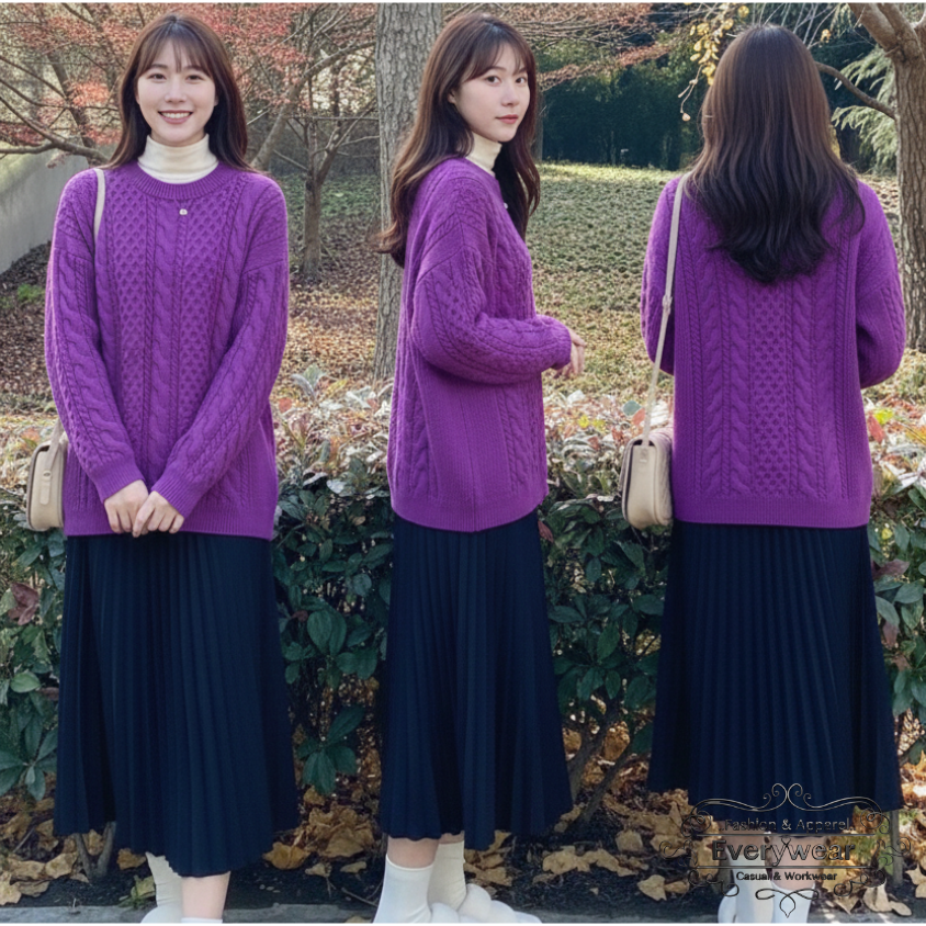 แมตช์ลุคอบอุ่นให้สวยละมุนด้วย เสื้อไหมพรมถักลายคาเบิ้ล เนื้อนุ่มใส่สบาย พร้อม กระโปรงพลีทยาวทรงสวย ใส่ออกมาแล้วดูเพรียว ดูเรียบร้อยแต่ยังมีความหวานแบบเกาหลี แมตช์ง่าย ใส่ได้ทุกวัน เสื้อมีให้เลือกหลายสี: ม่วง / ชมพู / เขียว / โอรส ใส่คู่กับกระโปรงพื้นดำ เข้ากันทุกเฉดสี หยิบใส่เมื่อไหร่ก็ดูดีทันที