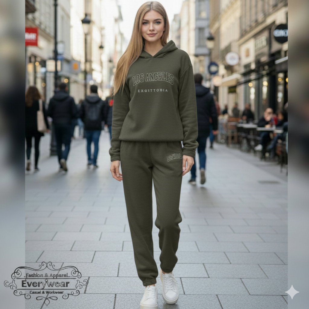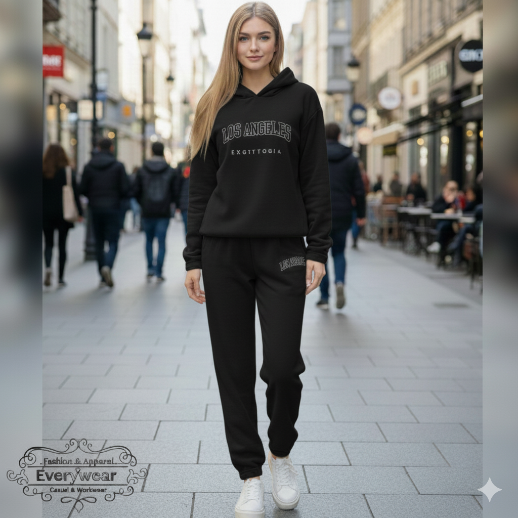 เซ็ตเสื้อฮู้ดและกางเกงวอร์มสุดอบอุ่น ที่ลูกค้าตามหามากที่สุดในช่วงฤดูหนาว!เสื้อฮู้ดผ้าฟลีซเนื้อนุ่มพิเศษ อุ่นกำลังดี ไม่หนาจนเทอะทะ ผ้าเบาสบาย ใส่แล้วนุ่มฟูเหมือนห่มผ้าห่มติดตัว ดีไซน์ปักลาย “LOS ANGELES” เท่กำลังดี แมทช์ง่ายทุกวันกางเกงวอร์มทรงลำลองเข้าชุด เนื้อผ้าเดียวกับเสื้อ อุ่น นุ่ม ไม่คัน เอวยางยืดกระชับ ใส่สบายทั้งวัน ไม่ว่าจะเดินเที่ยว ออกทริป หรือวันชิลในเมือง ชุดนี้ขายดีมากช่วงลมหนาว เพราะใส่ง่าย ใส่อุ่น และให้ลุคสตรีทเท่ ๆ แบบเกาหลี-อเมริกัน ผ้าดี ใส่สบาย อบอุ่นแบบไม่ต้องเลเยอร์เยอะ