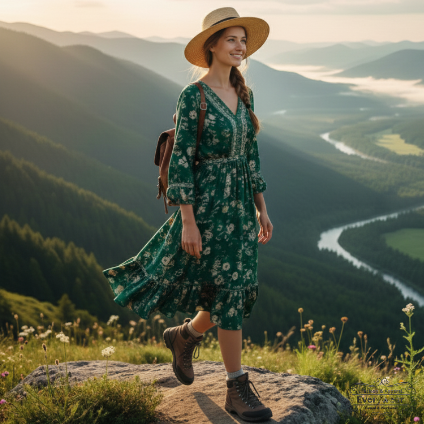 🌼 เดรสยาวลายดอกไม้สไตล์วินเทจ (Floral Midi Dress)