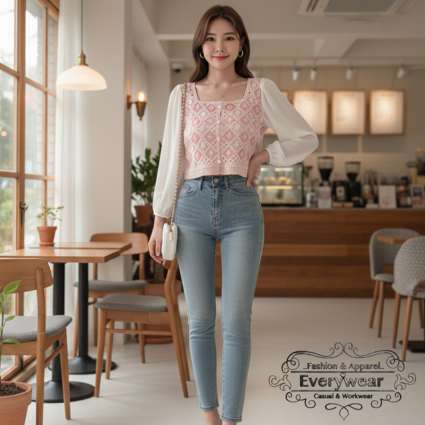 🌸 ทรงครอปสวย: แมทช์ง่ายกับกางเกงยีนส์เอวสูง หรือกระโปรงตัวโปรด ให้ลุคที่ดูขาวยาวและดูดีมีสไตล์