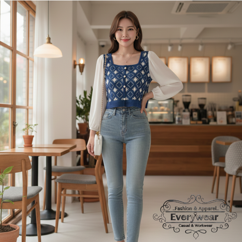 Daisy Crochet Top | เสื้อครอปแขนยาวแต่งกั๊กโครเชต์ ✨ ดีเทลวินเทจไม่ซ้ำใคร สร้างลุคคุณหนูสุดคิ้วท์! เสื้อตัวนี้คือการรวมกันของดีไซน์ที่ลงตัวและมีเสน่ห์: เสื้อแขนยาวผ้าชีฟอง/ผ้าโปร่ง เนื้อนุ่มสบาย ตัดเย็บเข้ากับ เสื้อกั๊กโครเชต์ลายตาราง อย่างประณีต มอบลุคที่ดูอ่อนหวาน มีรายละเอียด และมีสไตล์แบบวินเทจญี่ปุ่น/เกาหลี