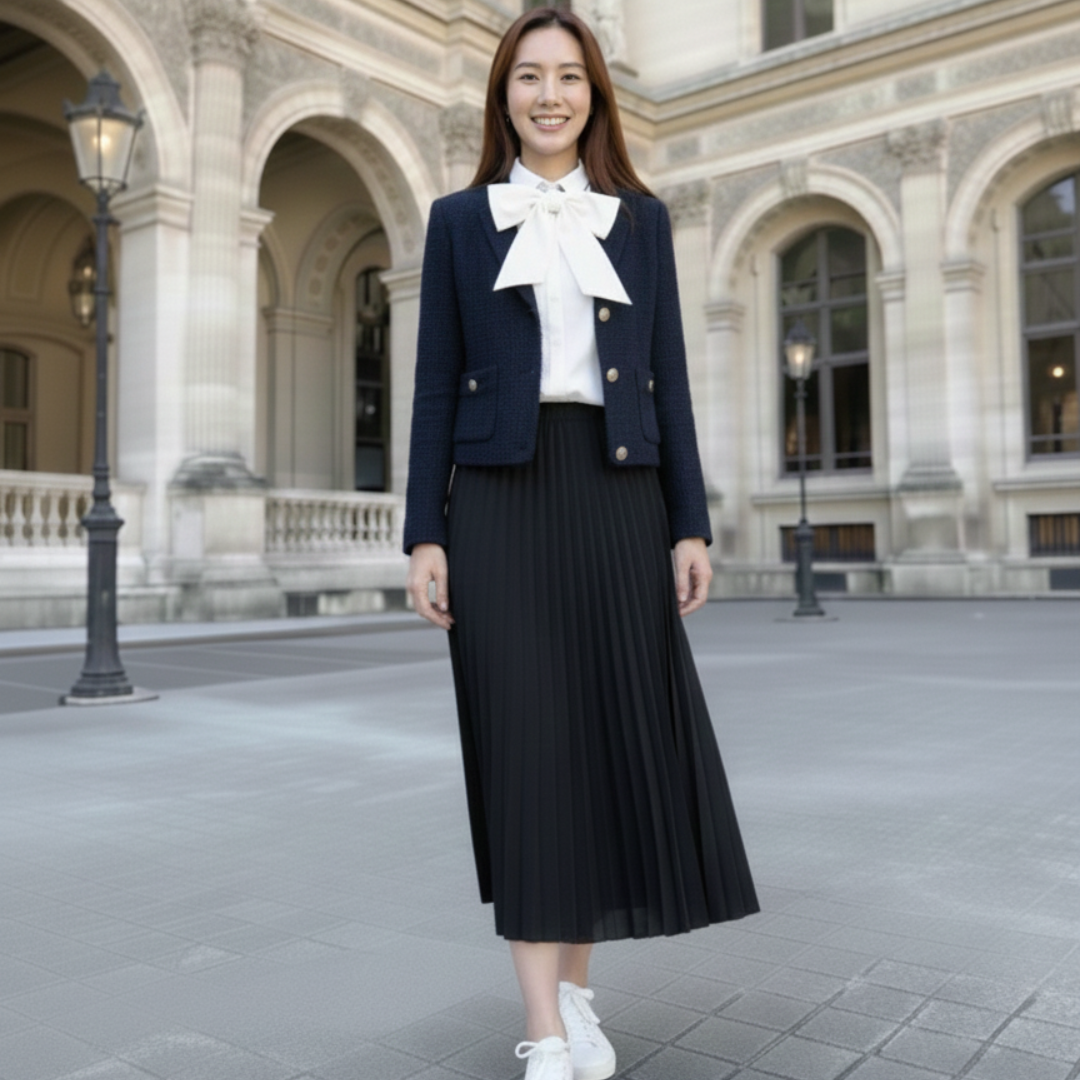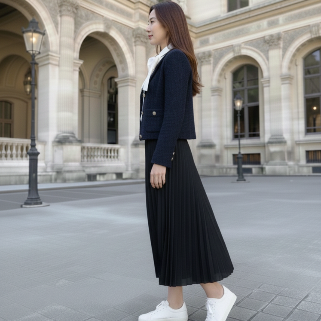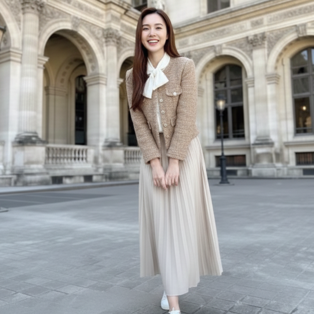 ✨ Parisian Grace Tweed Set เสน่ห์ความเรียบหรูสไตล์ปารีเซียง ตอบโจทย์ลุค Classy ที่ใส่ได้ทุกวัน เปลี่ยนบรรยากาศการแต่งตัวให้เหมือนเดินอยู่กลางกรุงปารีสด้วยเซ็ตเสื้อคลุมผ้าทวีดเนื้อดี จับคู่กับกระโปรงอัดพลีทระบายสวย เป็นส่วนผสมที่ลงตัวระหว่างความอ่อนหวานและความภูมิฐาน ให้คุณดูโดดเด่นในทุกโอกาสพิเศษ