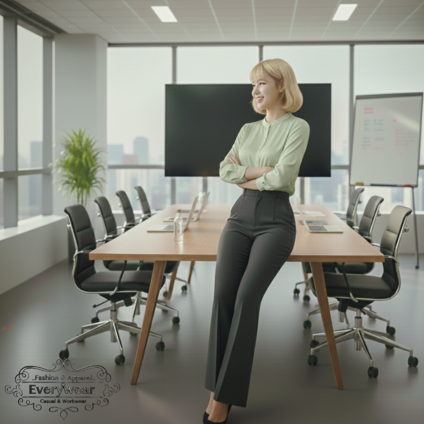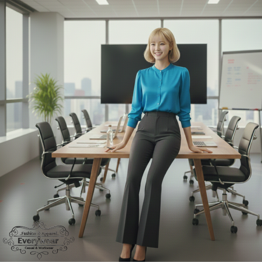 - ชุดทำงานลุคโปรเฟสชันแนล ดีไซน์เรียบหรู ใส่แล้วดูสุภาพและมีระดับ เสื้อซาตินเงางามทรงพรีเมียม แมตช์กับกางเกงขายาวทรงสลิมขาบานช่วยให้หุ่นเพรียว ดูสูงขึ้นทันที — มี 3 สีให้เลือก: ฟ้า / ครีม / เขียวอ่อนเสื้อซาตินซอฟต์สัมผัส