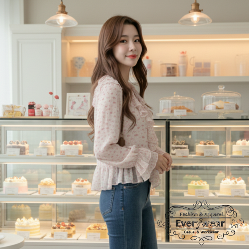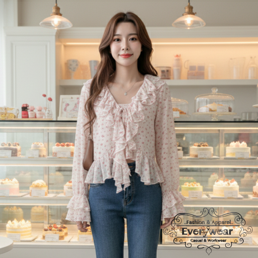 เสื้อเบลาส์พิมพ์ลายดอกไม้สุดน่ารัก 🌸เติมความสดใสและสไตล์หวาน ๆ ให้กับตู้เสื้อผ้าของคุณด้วยเสื้อเบลาส์พิมพ์ลายดอกไม้ตัวนี้! ดีไซน์คอวีผูกโบว์และระบายลูกไม้สุดพริ้วไหวที่ช่วงคอและแขนเสื้อ ช่วยให้คุณดูอ่อนหวานและโดดเด่นในทุกโอกาส ไม่ว่าจะเป็นลุคไปเที่ยวสบาย ๆ หรือออกเดทสุดโรแมนติก เสื้อตัวนี้ตอบโจทย์คุณได้แน่นอน!